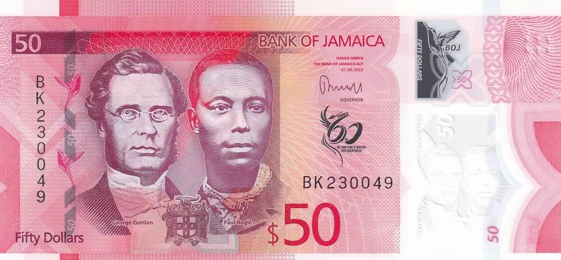 Home > > Jamaica 50 Dollars - Paul Bogle - George Gordon - 2022 (2023) - Polymer - Serial BK