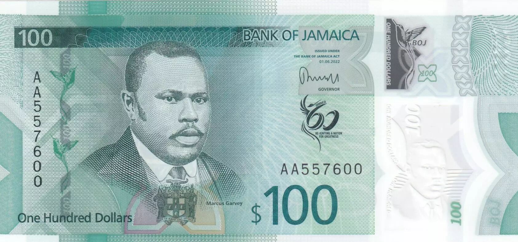 Billet Jamaïque 100 Dollars Marcus Garvey - 2022 - Polymer Série AA