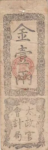 Home > World Banknotes > Asian Banknotes > Japan > Japan 1 ryo - Dragons - Dajokan - Satsu - 1868