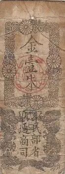 Home > World Banknotes > Asian Banknotes > Japan > Japan 1 Shu - Nimbusho - Satsu - 1869 - Gold Note