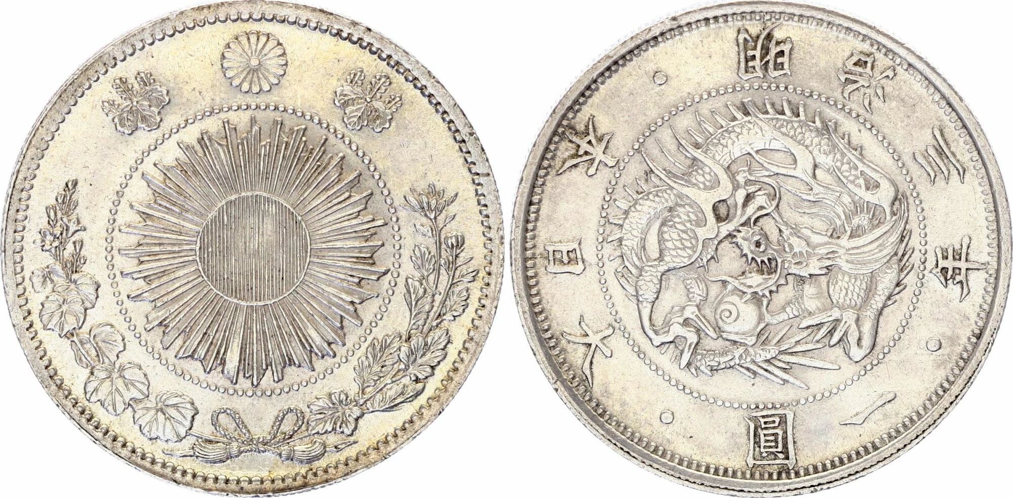 This coin is a silver 1 Yen, issued by Japan in 1870, corresponding to year 3 of the Meiji era. It is classified as a common circulation coin and was in Yen, the currency in effect from 1871.