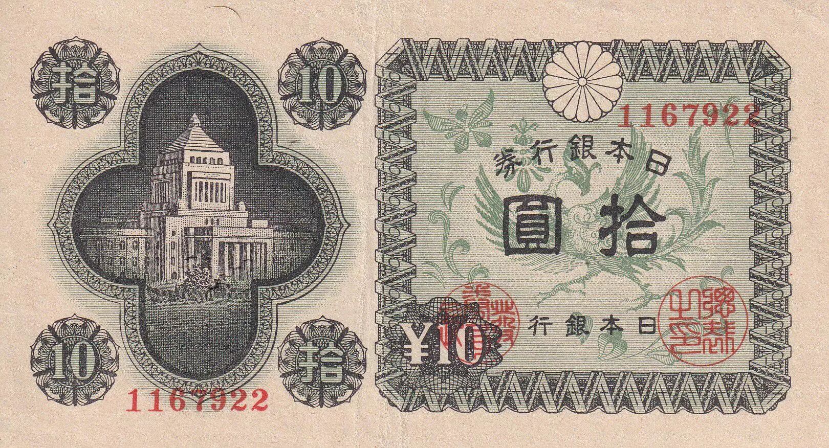 Banknote Japan 10 Yen - Monument - Phoenix - 1946 - P.87