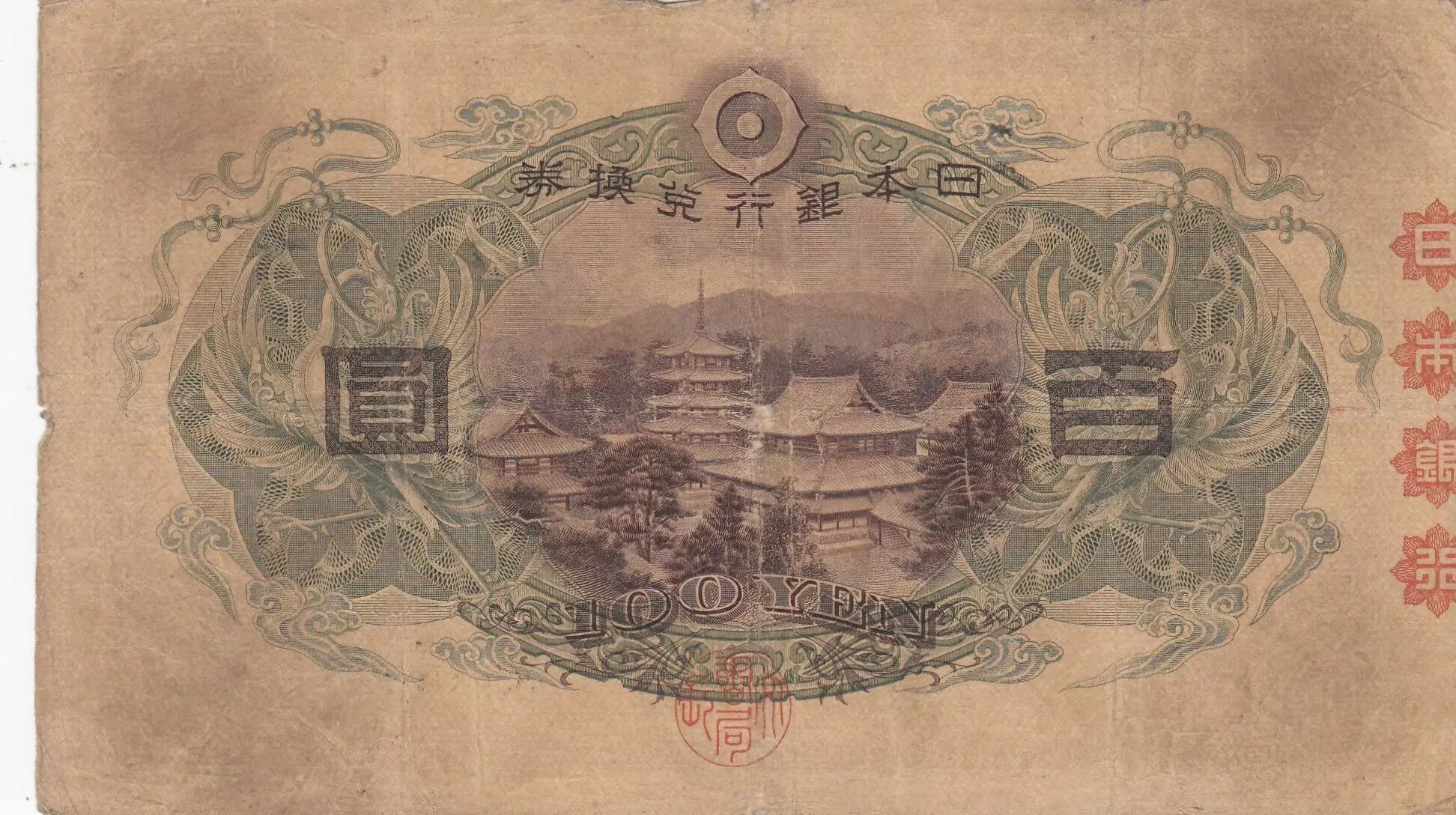 Home > World Banknotes > Asian Banknotes > Japan > Japan 100 Yen - Shotoku-taishi - Yumedono Pavillion - ND (1930) - Block 5