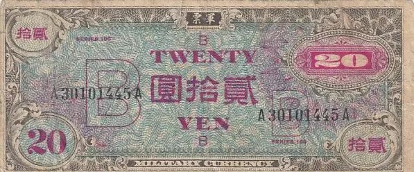 Home > > Japan 20 yen - Allied Military Currency - Letter B - 1945 - P.75