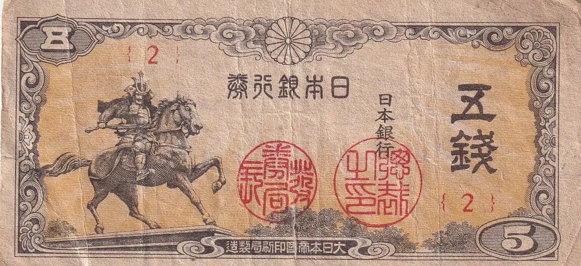 Banknote Japan 5 Sen - SamouraI - ND (1944) - P52