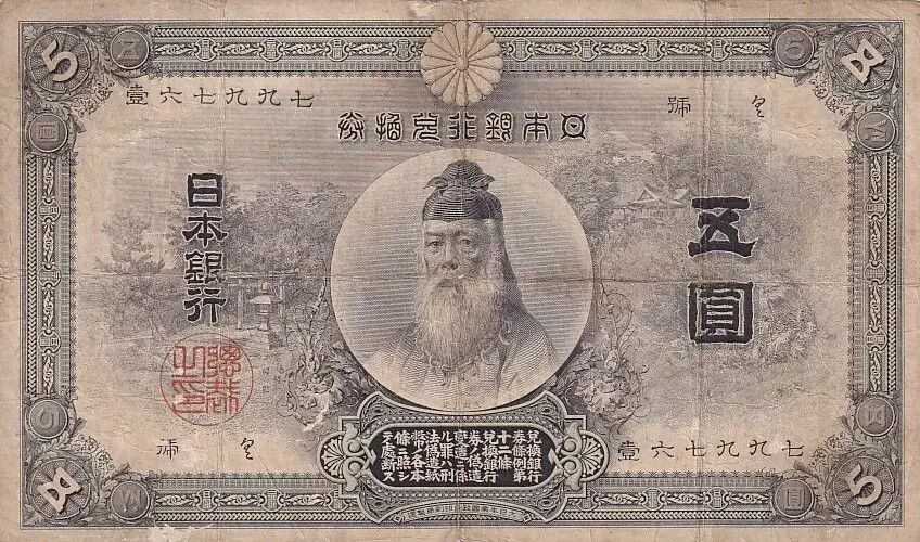 Banknote Japan 5 Yen Convertible in Gold - Takeuchi Sukune -1899-1910