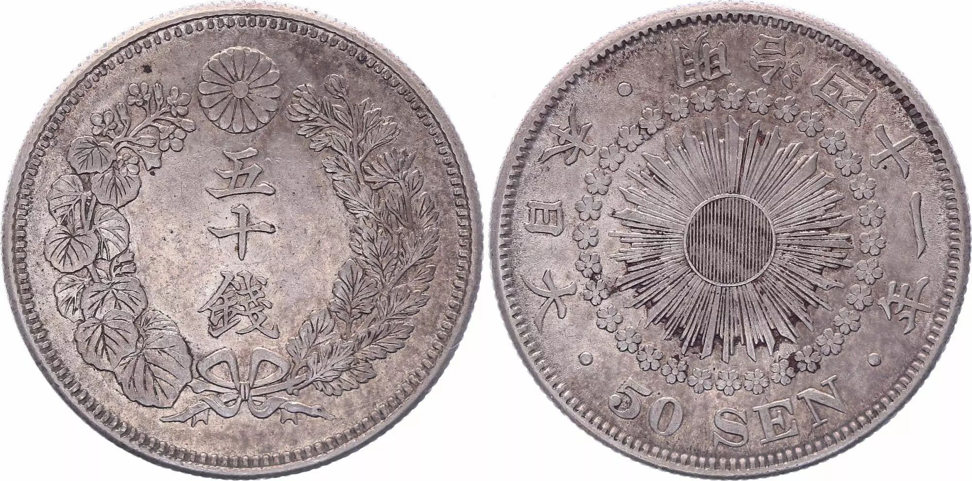 Coin Japan 50 Sen - 1908 Mutsuhito Year 41 - XF