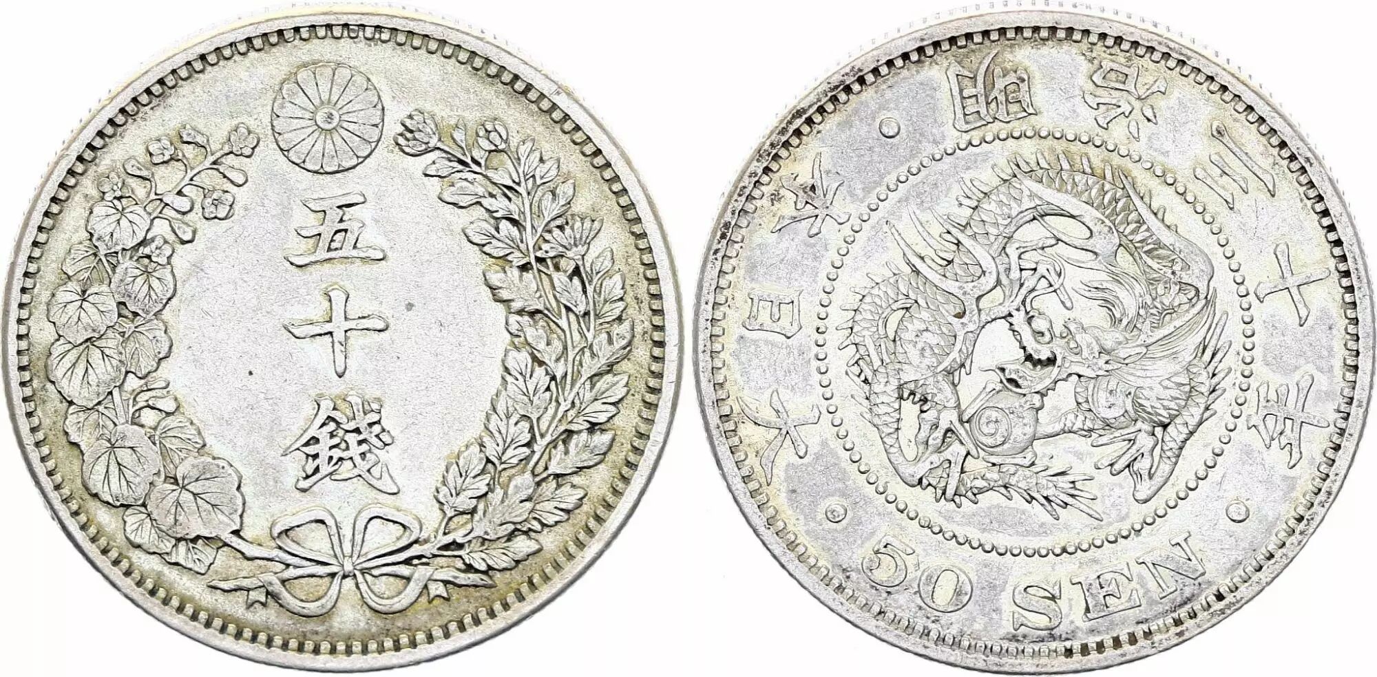 Coin Japan 50 Sen Dragon - 1897 Meiji Year 30 - Silver