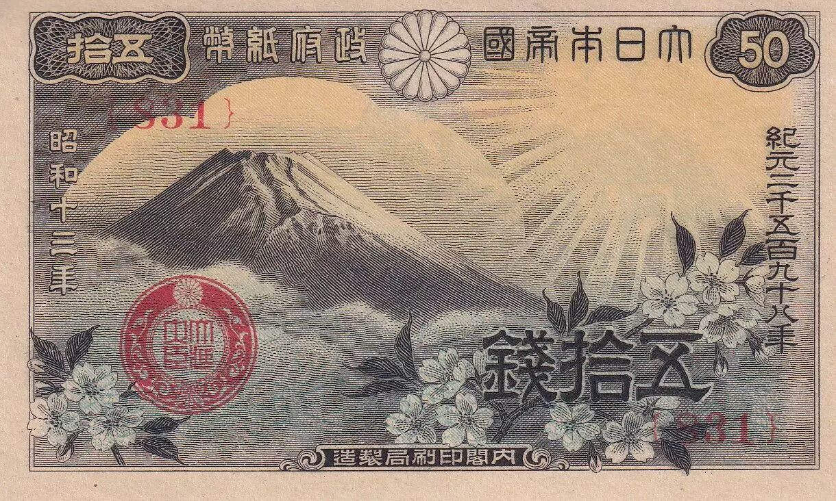 Banknote Japan 50 Sen - Mt. Fuji - 1938