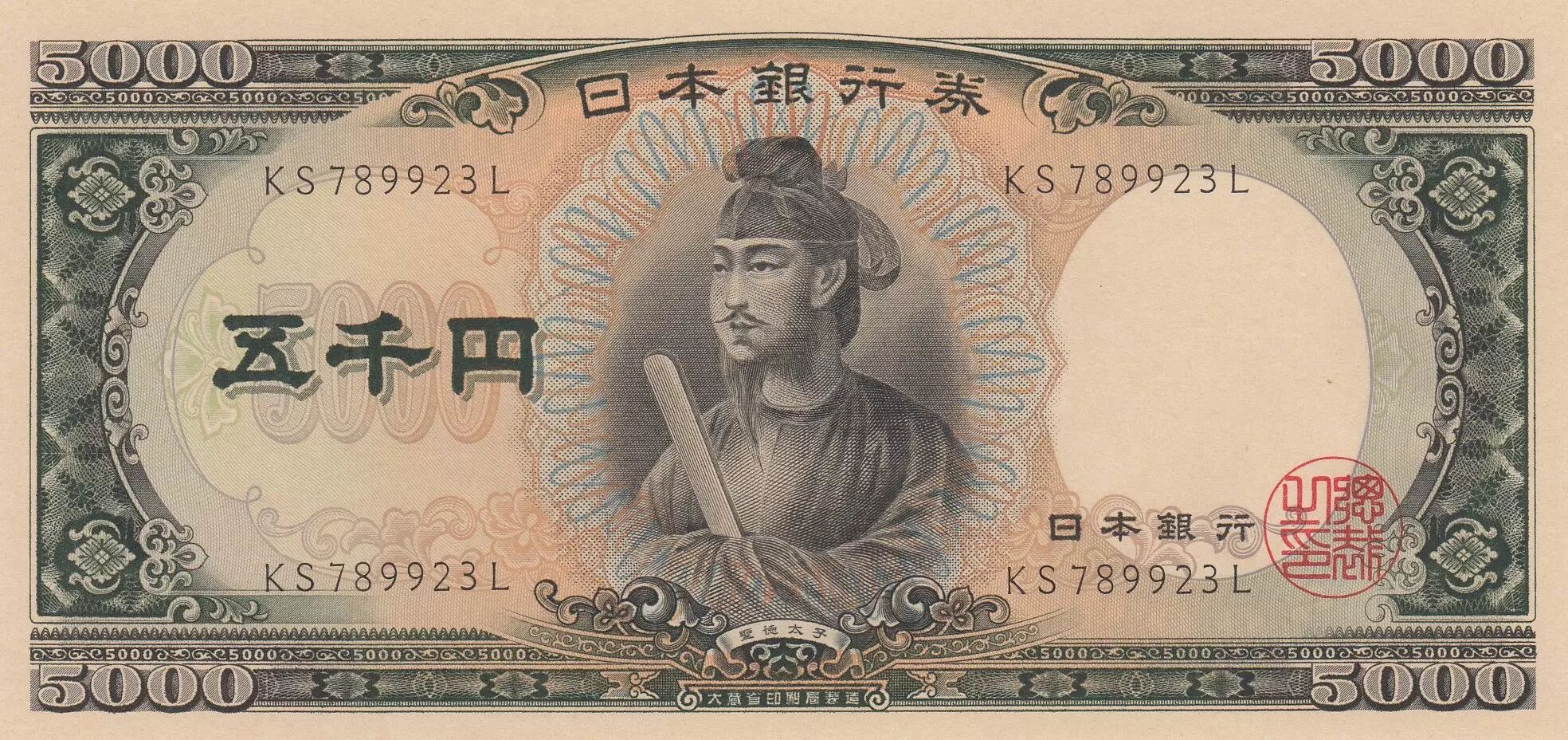 Banknote Japan 5000 Yen Shotoku-taishi - Central bank - 1957 Serial KS