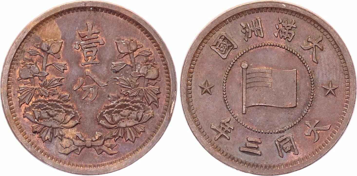 La pièce de 1 fen du Manchoukouo appartient au monnayage émis par l?État du Mandchoukouo, créé en 1932 en Mandchourie sous contrôle du Japon. Cet État, officiellement présenté comme indépendant, fut placé sous l?autorité de l?empereur Puyi, dernier souverain de la dynastie Qing.