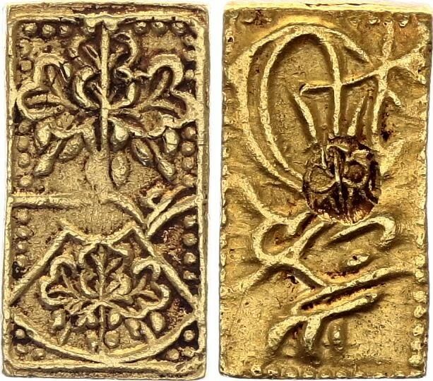 Il s'agit d'une pièce de type Keich? Bu-ban-kin, frappée durant l'époque Edo au Japon, plus précisément entre 1601 et 1695. Cette pièce est fabriquée en or, avec un titrage de 834 millièmes.