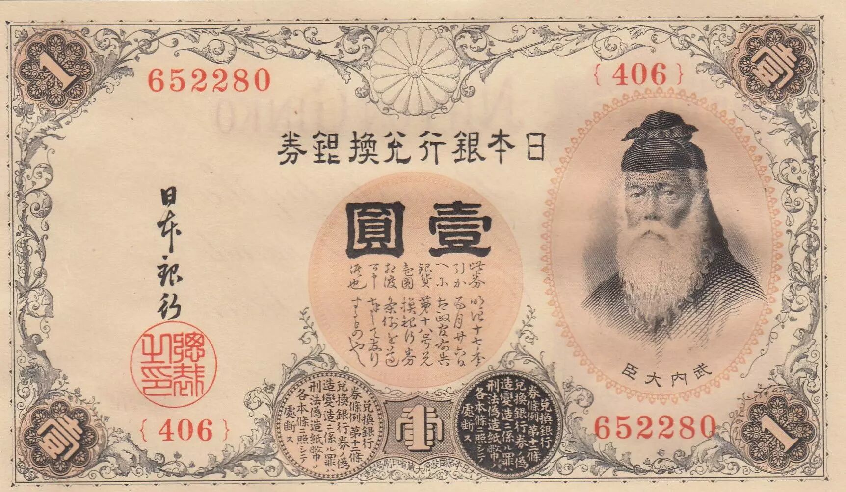 Billet Japon 1 Yen - Takeuchi Sukune - ND (1916) - Série 406