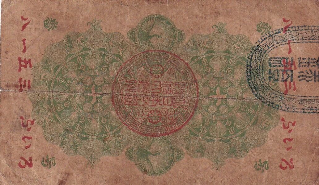 Le billet se distingue par son motif principal représentant deux phénix et des dragons. Ces créatures mythologiques sont disposées selon un motif symétrique vertical, ce qui confère au billet un aspect équilibré et harmonieux. Les détails des phénix et des dragons sont finement exécutés, témoignant du savoir-faire artistique de l'époque.