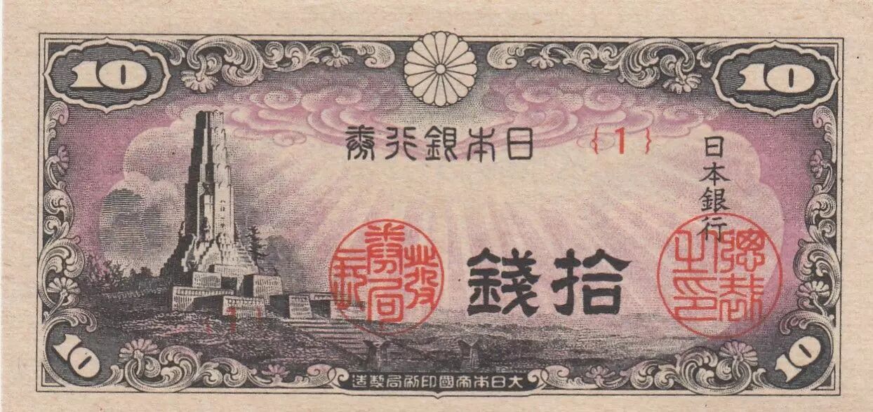 Billet Japon 10 Sen Temple 1944 - Série 1