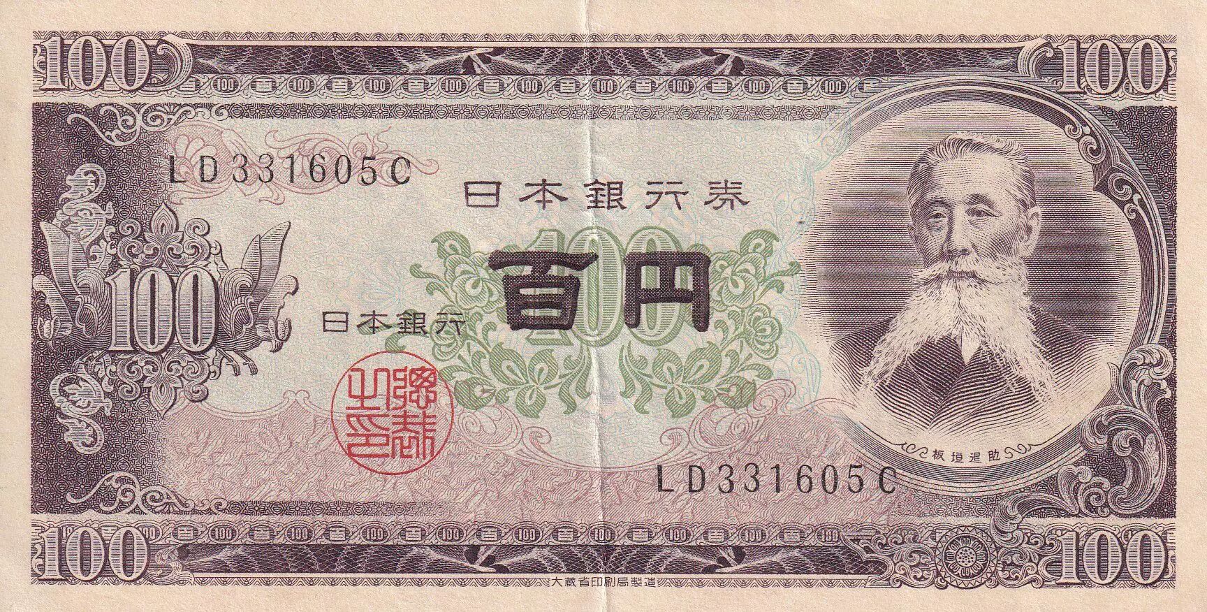 Accueil > Archivage > Japon 100 Yen - Itagaki Taisuke - Parlement - ND (1953) - P.90c