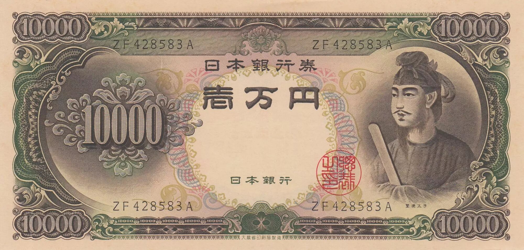 Accueil > Billets du Monde > Billets d'Asie > Japon > Japon 10000 Yen - Shotoku-taishi - Phénix - 1958 - Série ZF