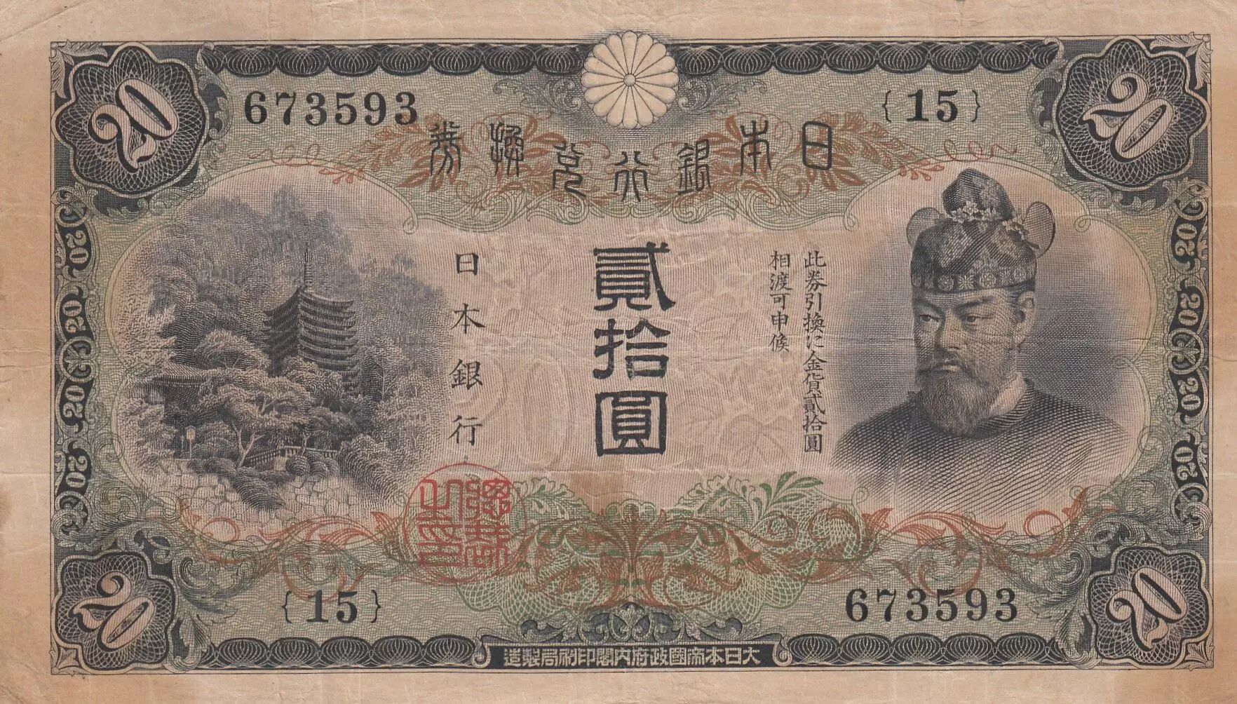 Fujiwara no Kamatari (614-669) était un homme d'État et un chef militaire japonais éminent de l'époque Asuka et du début de l'époque de Nara. Principalement connu pour avoir fondé le puissant clan Fujiwara, il a joué un rôle essentiel dans la configuration du paysage politique du Japon ancien. Kamatari a mené la rébellion Taika no Kaishin en 645, qui renversa le puissant clan Soga et introduisit des réformes majeures.