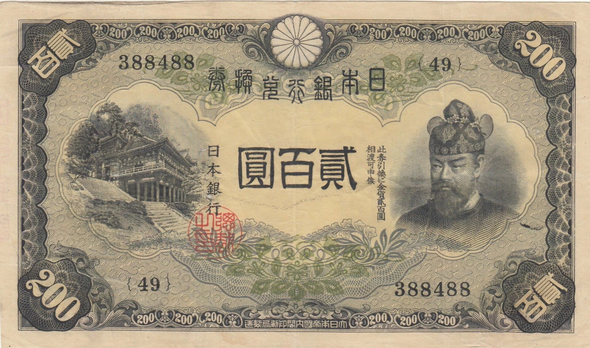 Ce billet de 200 Yen est un témoignage tangible de l'histoire monétaire du Japon au milieu du 20e siècle. Sa conception, les personnalités et symboles représentés, ainsi que son état de conservation, en font un objet d'intérêt pour les collectionneurs et les passionnés d'histoire numismatique.