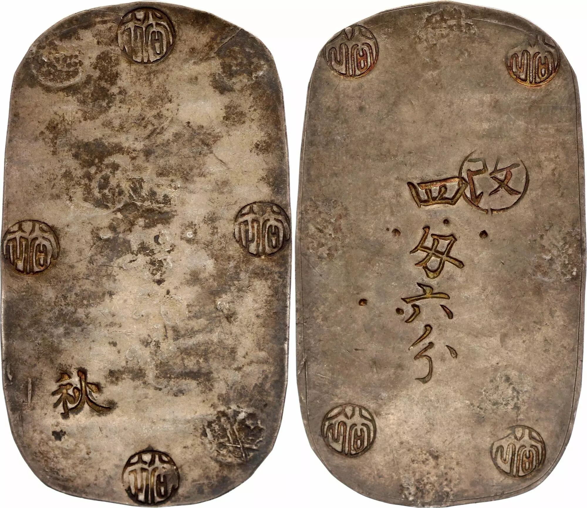 La monnaie de 4 momme 6 fun aurait été frappée en argent et avait une valeur nominale qui était liée au système monétaire japonais traditionnel basé sur les momme et les fun. Les momme et les fun étaient des unités de poids utilisées pour mesurer l'argent et d'autres métaux précieux.