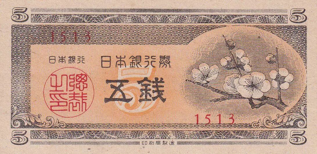 Billet Japon 5 Sen - Abricotier du Japon - ND (1948) - P.83