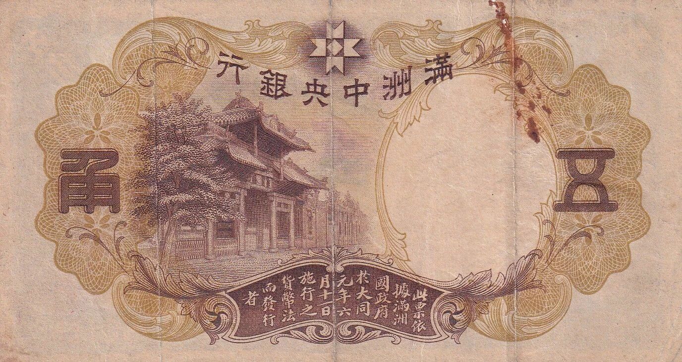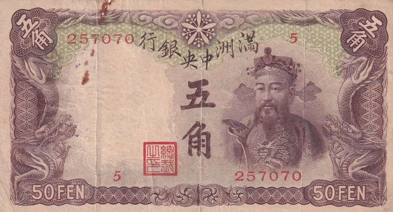 Ce billet de banque est émis par le Japon en 1935. Il possède une valeur nominale de 50 fen.