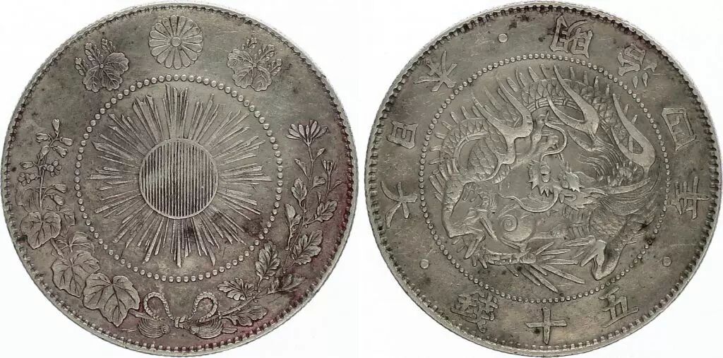 Accueil > > Japon 50 Sen Dragon - 1871 Meiji 4 - 5 em ex