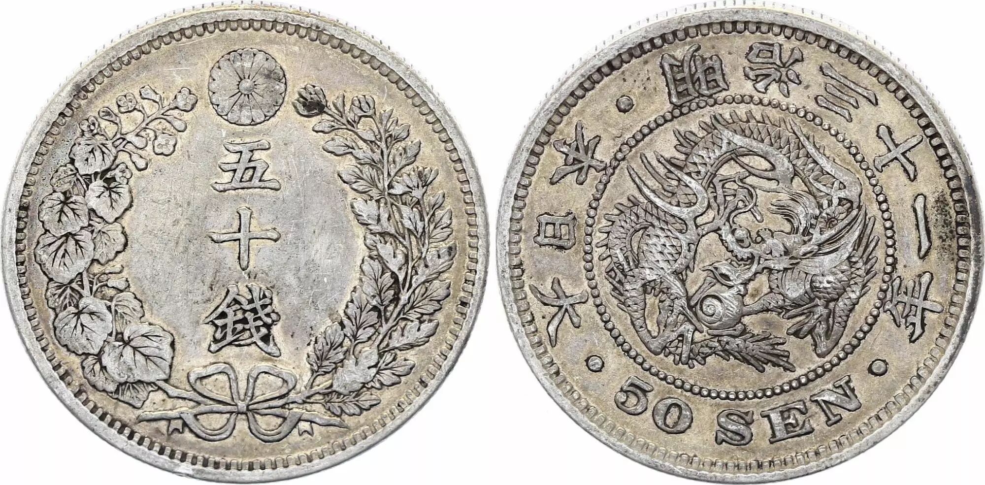 Pièce Japon 50 Sen Dragon - 1898 Meiji An 31 - Argent