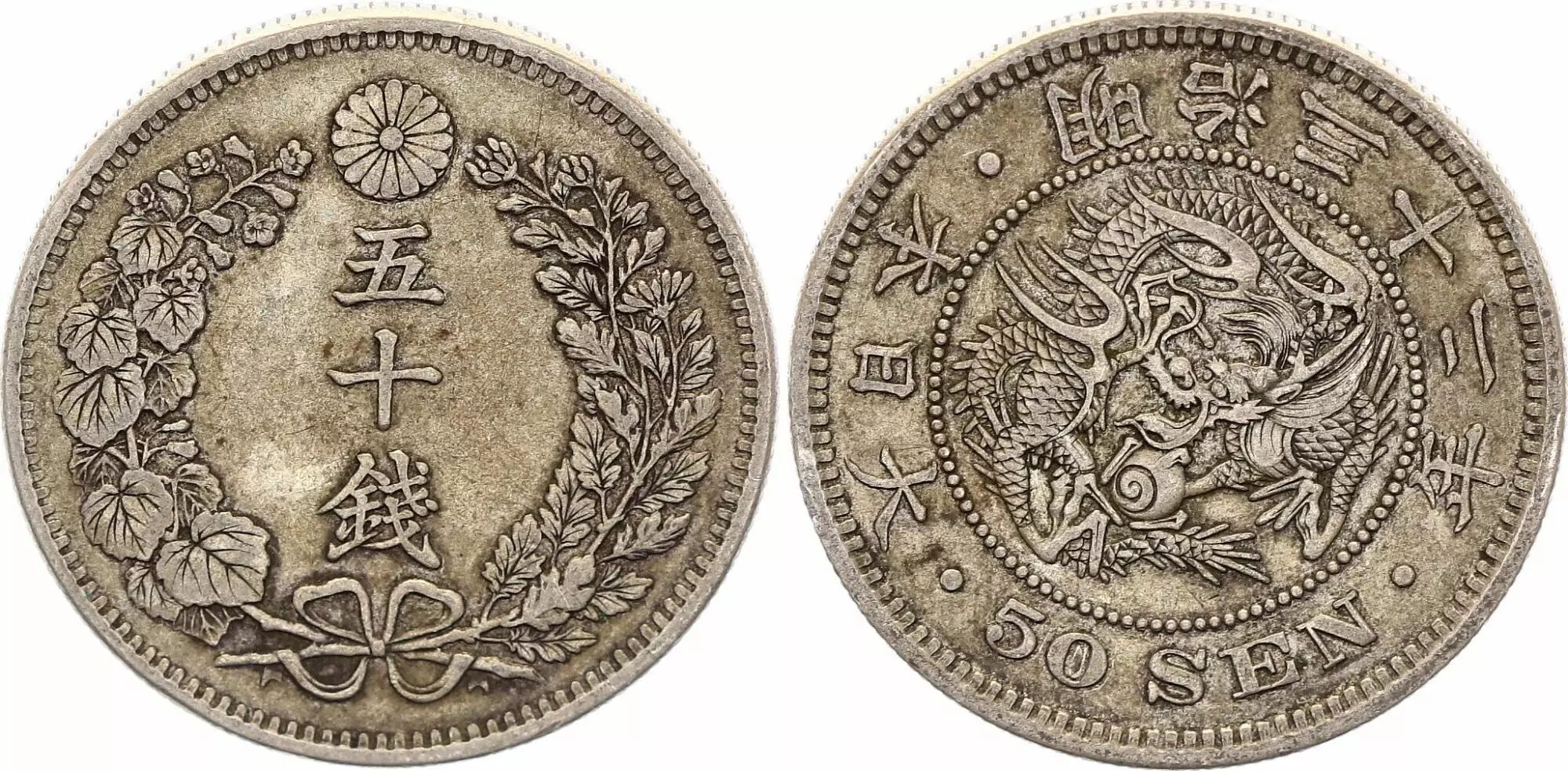 Accueil > Archivage > Japon 50 Sen Dragon - 1899 Meiji An 32 - Argent
