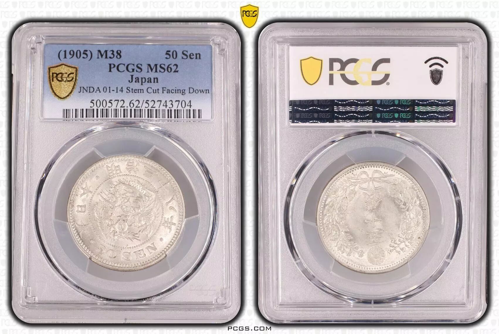 Pièce Japon 50 Sen Dragon - 1905 Meiji An 38 - PCGS MS 62