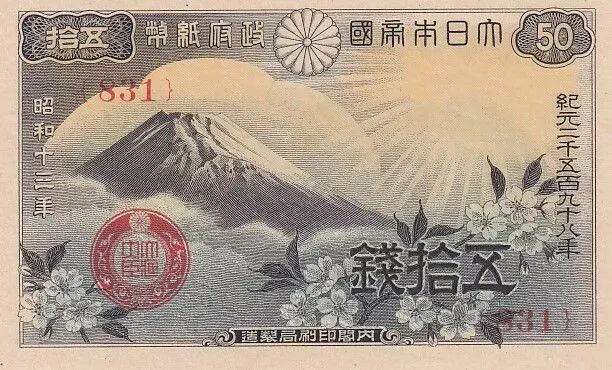 Billet Japon 50 Sen Mont Fuji - 1938 - Bloc 831