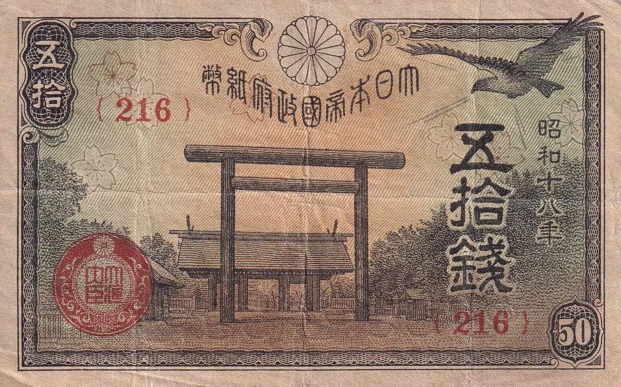 Accueil > Archivage > Japon 50 Sen - Oiseau - Montagne - ND (1942-1944) - P.59