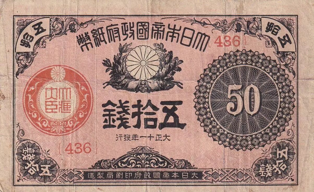 Billet Japon 50 Sen Rose et Noir - 1917-1922 - Bloc 436