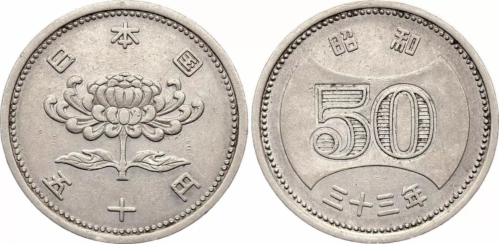 Pièce Japon 50 Yen, Showa - 1958 - Year 33
