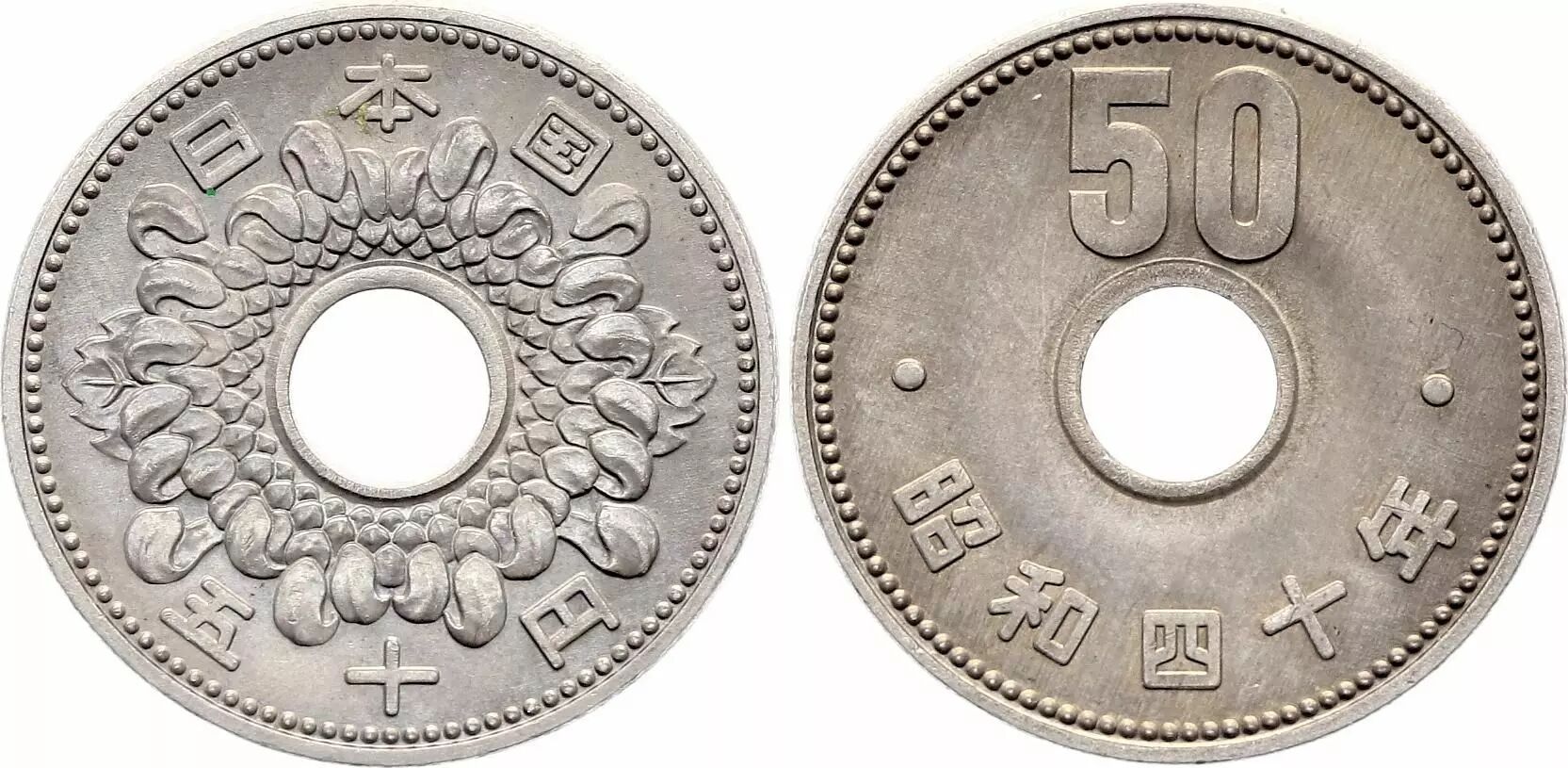 Pièce Japon 50 Yen, Showa - 1965 - Year 40