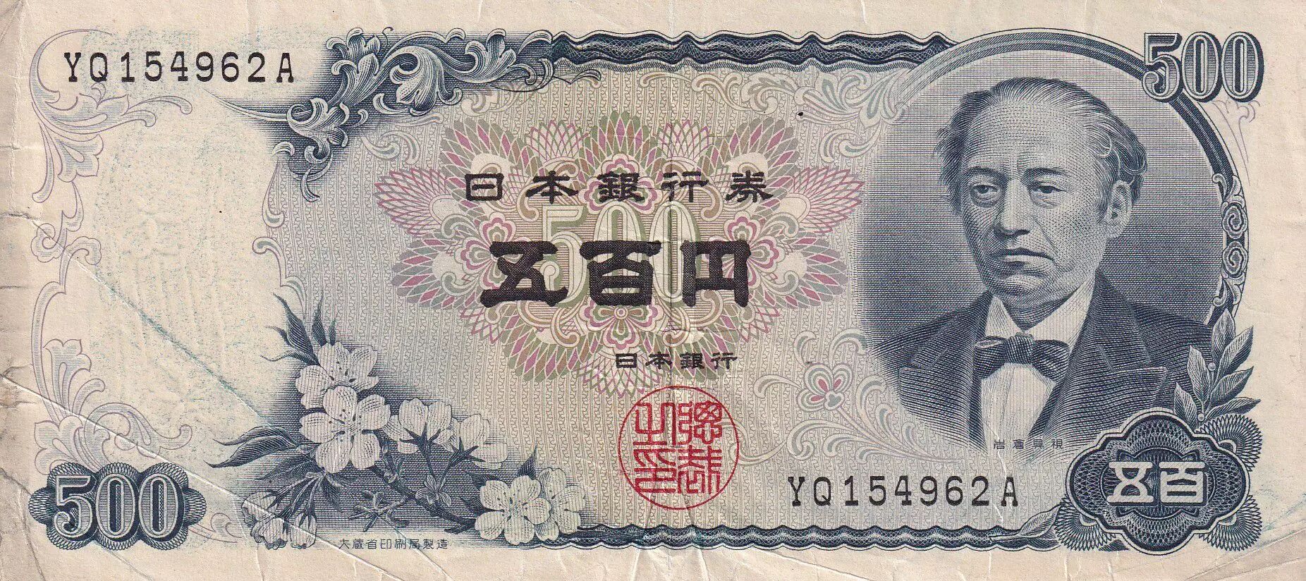 Billet Japon 500 Yen - Tomomi Iwakura - Mont Fuji - 1969 - TB+ - P.95b