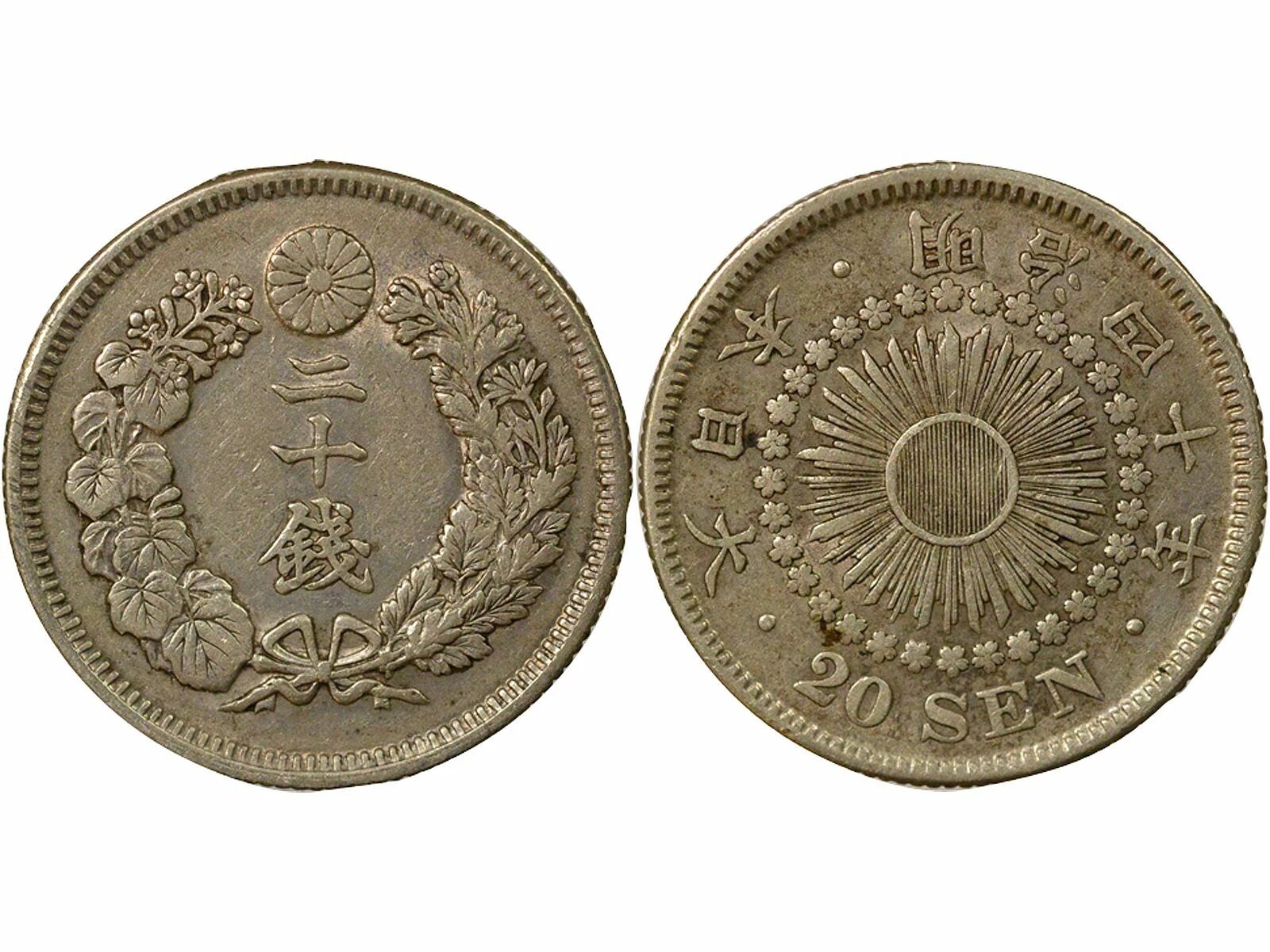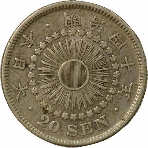 Pièce Japon Meiji - 20 Sen Argent - An 40 (1907)