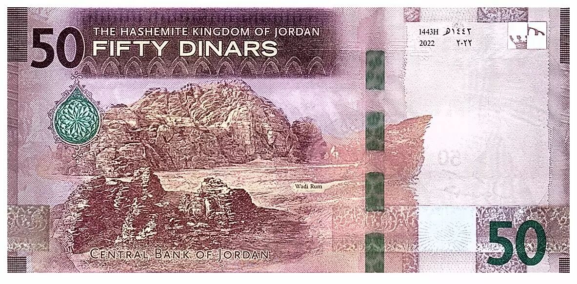 Home > > Jordan 50 Dinars - King Abdallah II - Wadi Rum - 2022 - Serial AC