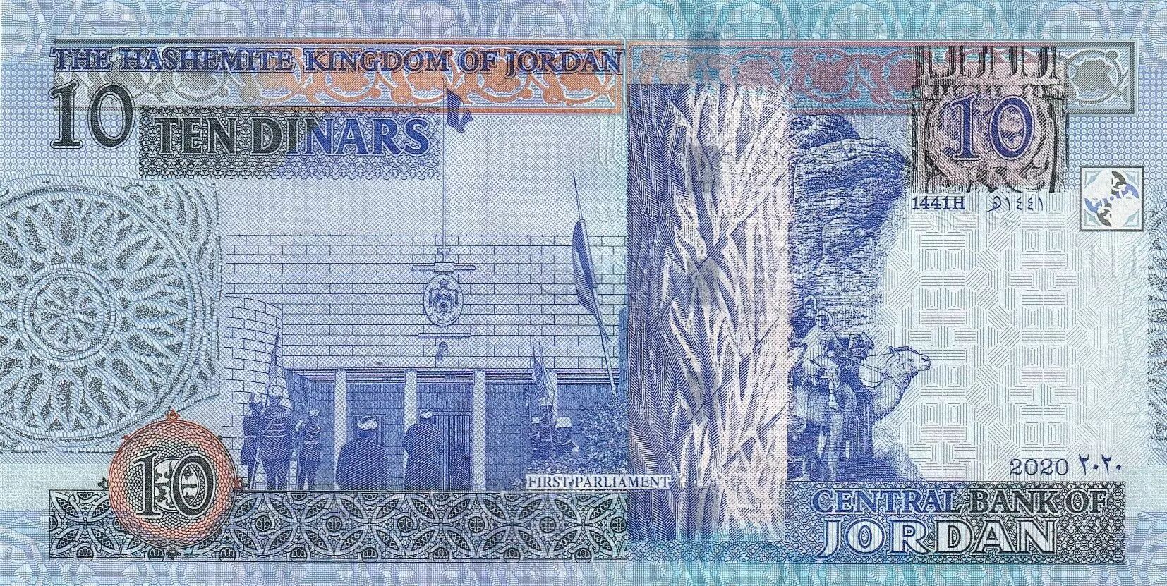 Accueil > Billets du Monde > Billets d'Asie > Jordanie > Jordanie 10 Dinars - Roi Talal Ibn Abdullah - Parlement, chameau - 2020