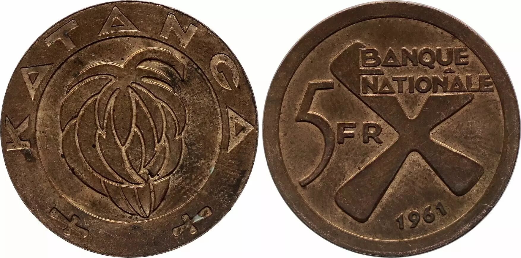 The Katanga cross represented on this coin is also called the Baluba cross, was poured copper into sand molds