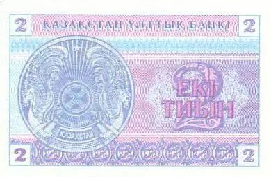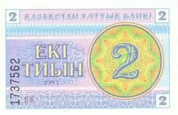 Billet Kazakhstan 2 Tyin Bleu et rose - 1993