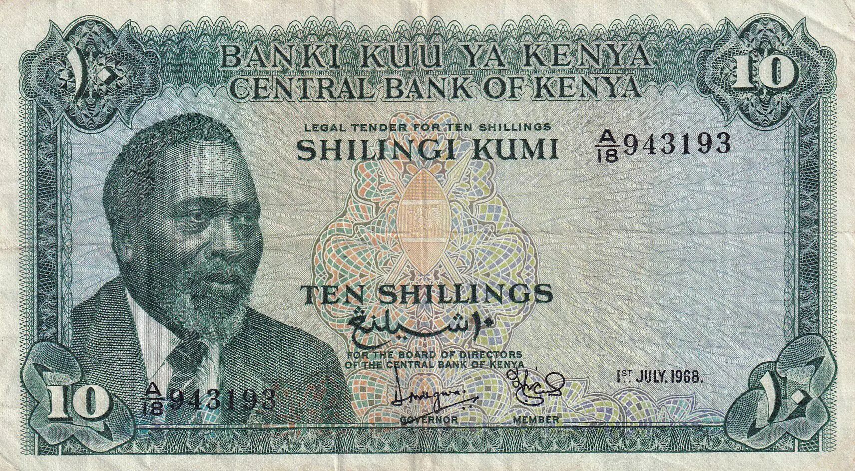 Banknote Kenya 10 Shillings - Mzee Jomo Kenyatta - Agriculture - 1968 - Serial A.18 - P.2c