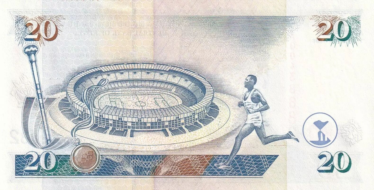 Home > World Banknotes > African Banknotes > Kenya > Kenya 20 Shillings - M. J. Kenyatta - Stadium - 1996