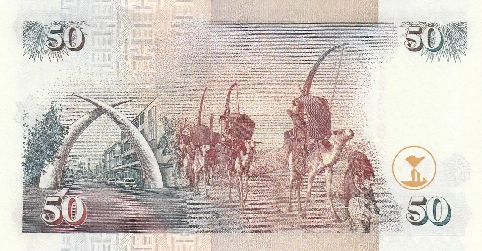 Au verso, le billet met en scène des chameaux dans un paysage semi-aride, reflétant certaines régions du Kenya. La faune et les paysages du Kenya sont des éléments récurrents sur les billets de banque du pays. La valeur nominale est également répétée au verso.