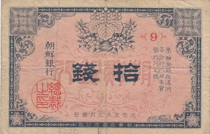 Banknote Korea 10 Sen - Flowers - Block 9 - 1916 - P.20