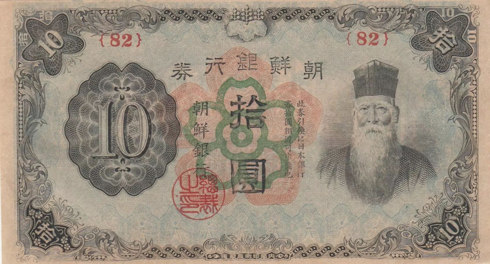 Home > World Banknotes > Asian Banknotes > Korea > Korea 10 Yen Man w/beard - ND (1944) - Block 82