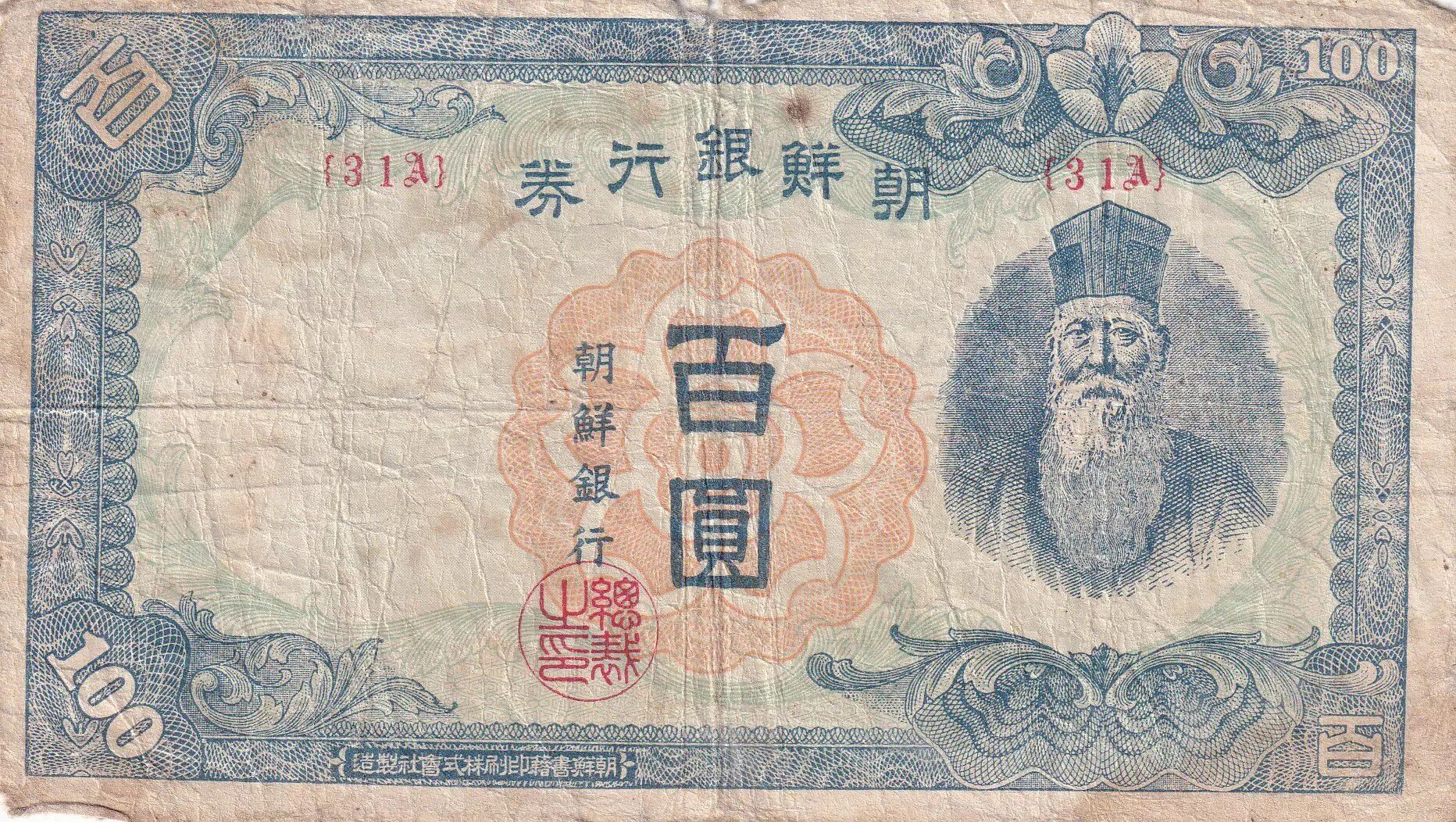 Home > > Korea 100 Yen - Man - Hibiscus - ND (1947) - P.46a