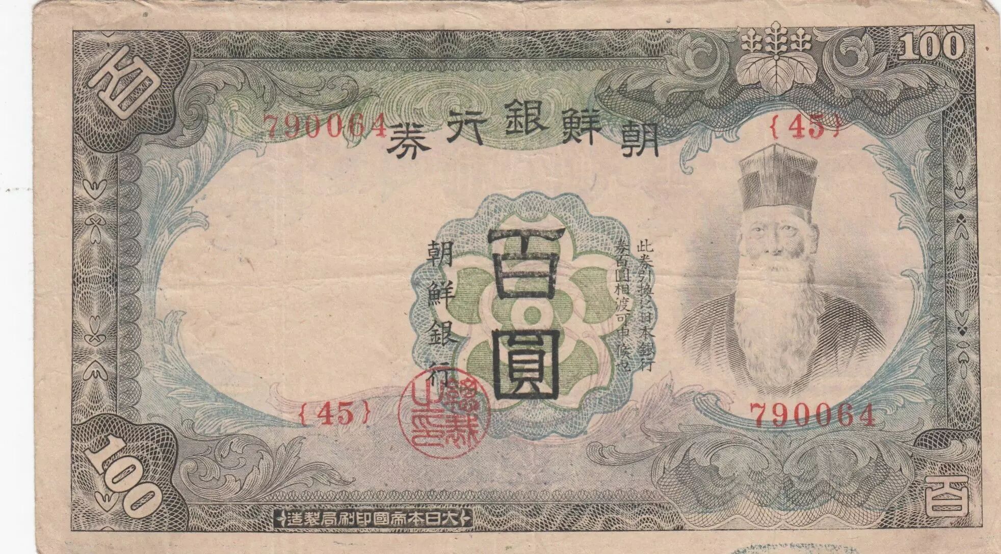 Home > > Korea 100 Yen Man w/beard - ND (1944) - Block 45