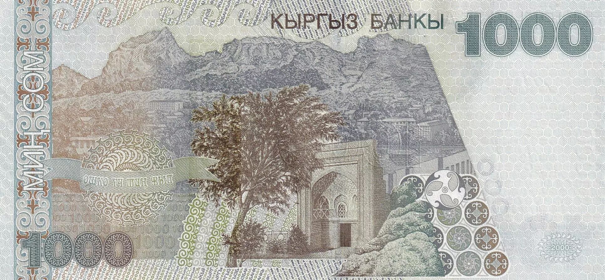Home > World Banknotes > Asian Banknotes > Kyrgyzstan > Kyrgyzstan 1000 Som - Jusul Balasagbin - Mountains - 2000 - Serial AE - P.18