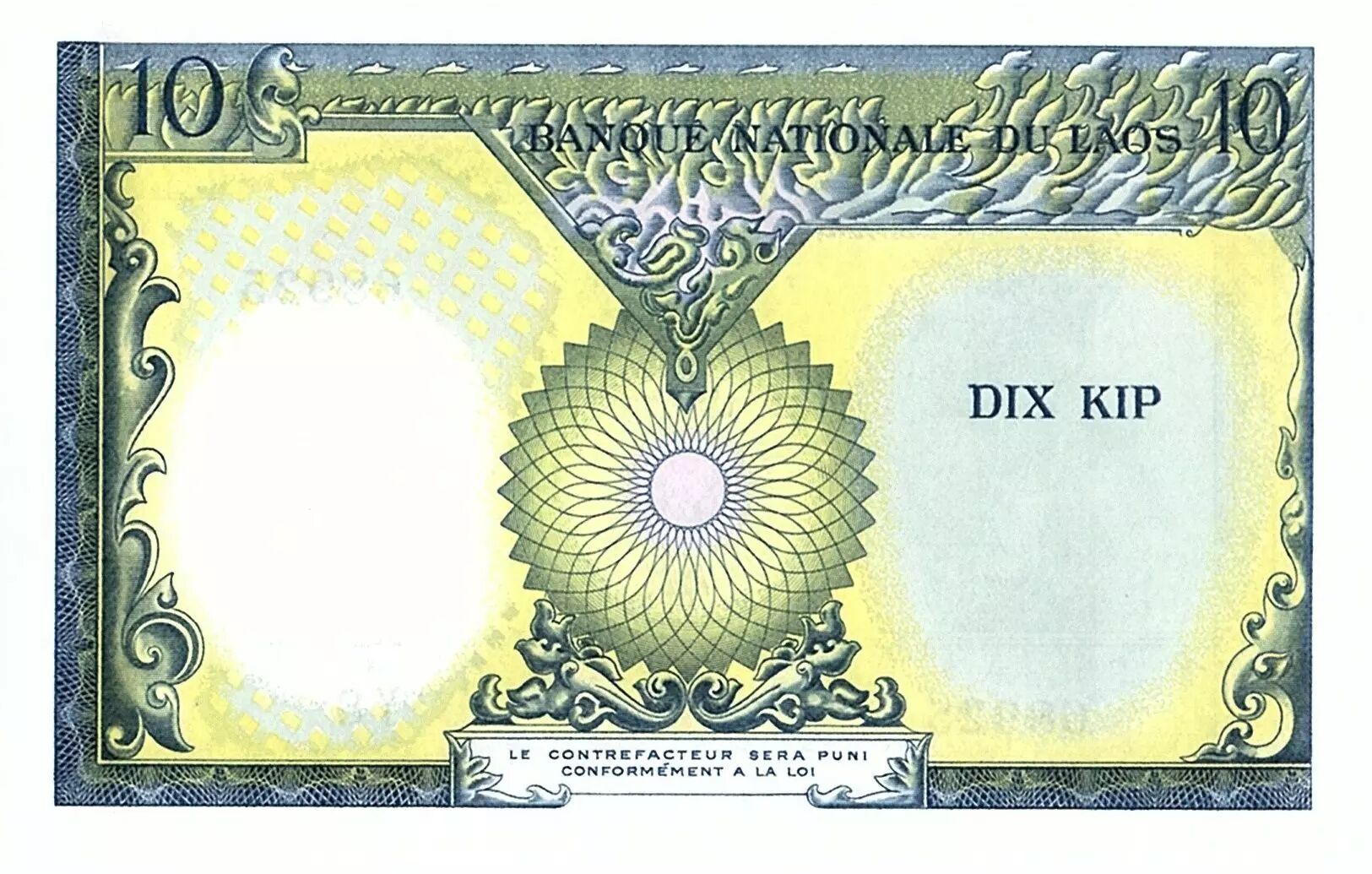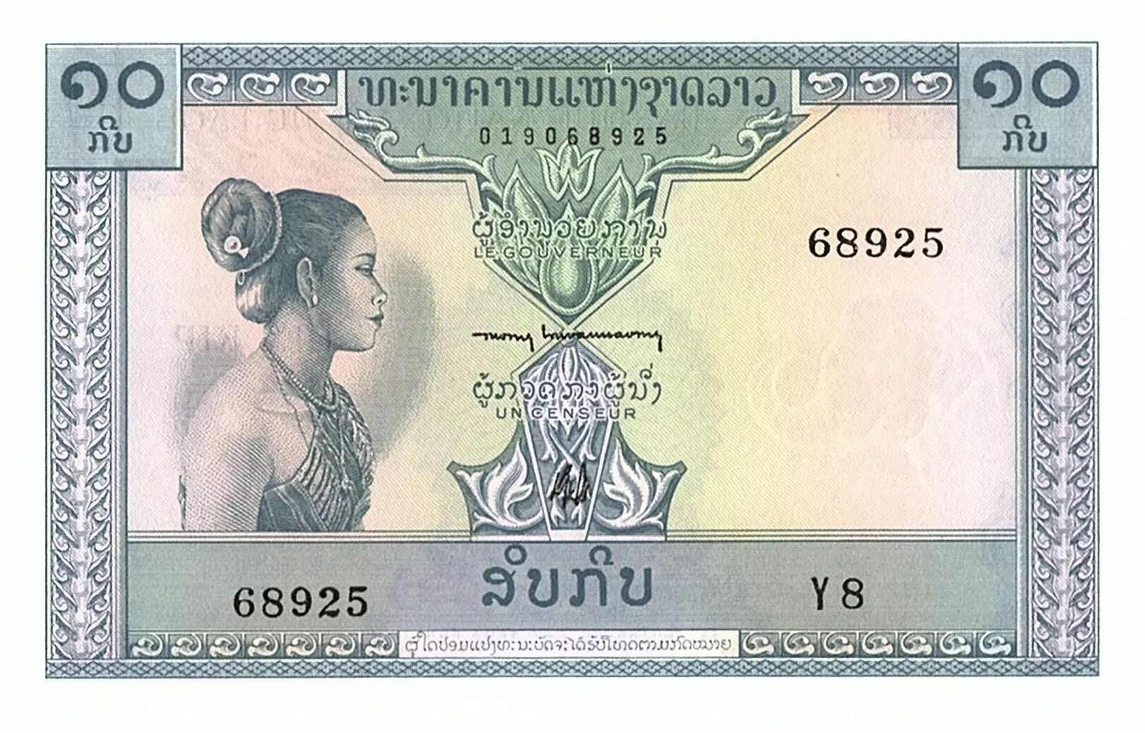 Home > > Lao 10 Kip - Laotian - Stylized figures - 1962 - Serial Y.8 - UNC - P.10b